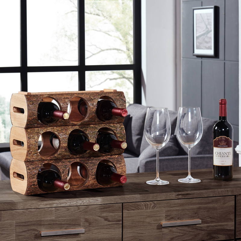 15.2" X 4.7" Stackable Three Bottle Wine Holder Acacia Wood Log Brown - Danya B.