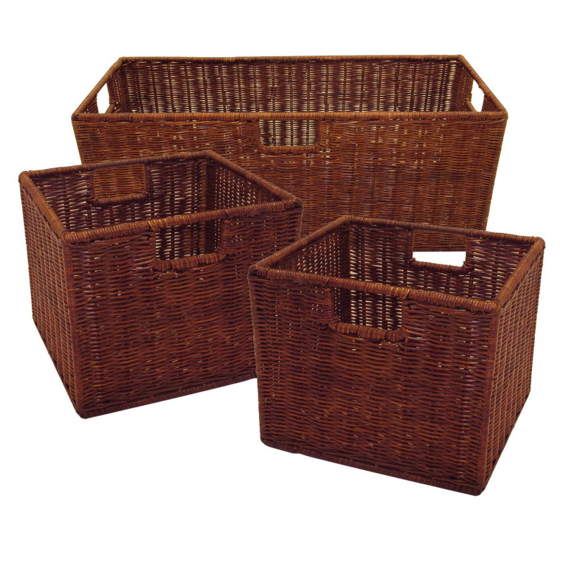 Set Of 3 Leo Wired Baskets 1 Large And 2 Small Antique Walnut - Winsome