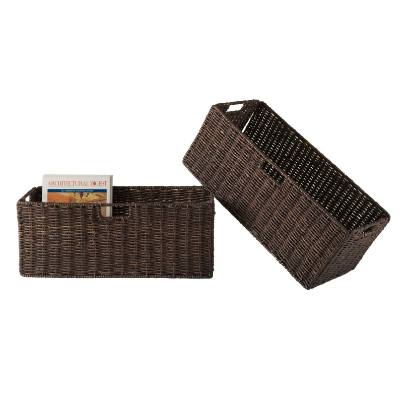2pc Granville Foldable Large Corn Husk Baskets Chocolate - Winsome