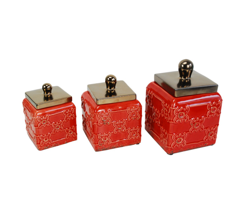 Storage Canister Set Of 3 Red 48oz/64oz/98oz - Drew Derose