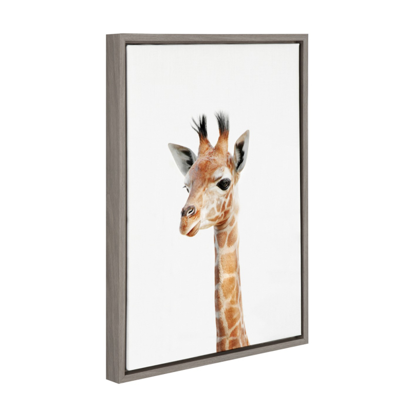 18" X 24" Sylvie Baby Giraffe Framed Canvas By Amy Peterson Gray - Kate And Laurel