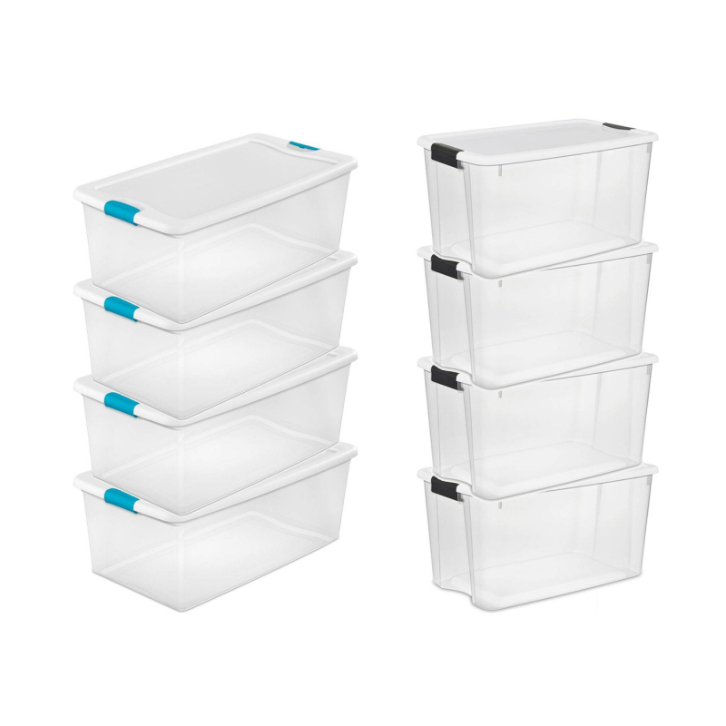 Sterilite 106 Quart Latching Storage Container (4 Pack) + 70 Quart Tote (4 Pack)