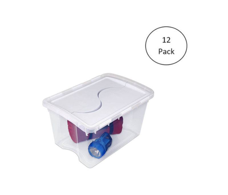 Sterilite 1914 Single 48 Quart Clear Hinged Lid Storage Tote Container (12 Pack)