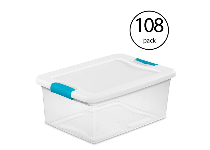 Sterilite 15 Quart Clear Plastic Stackable Storage Tote Container (108 Pack)