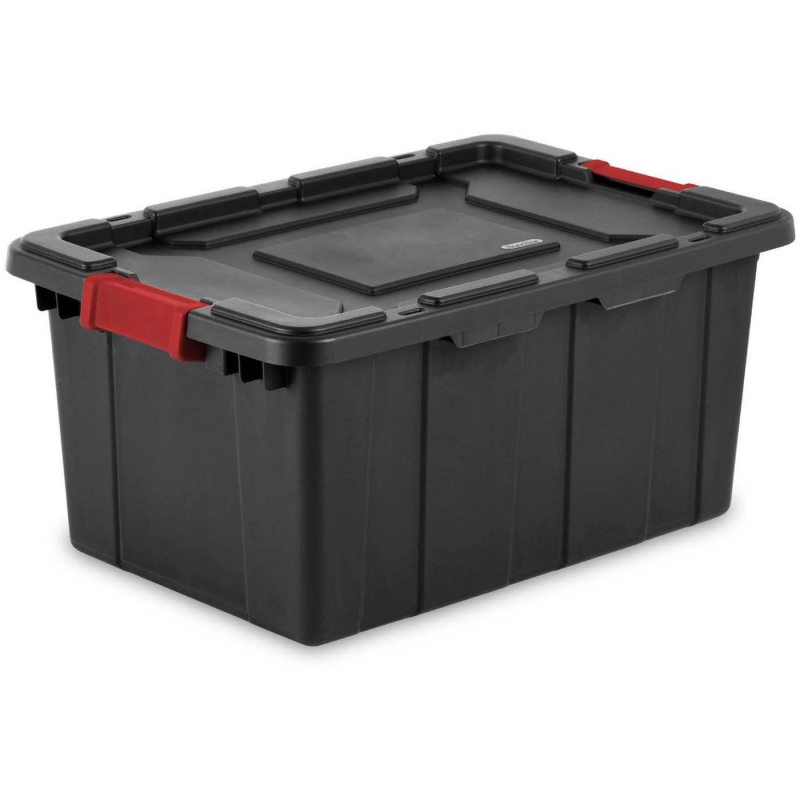 Sterilite 14649006 15g Durable Rugged Industrial Tote W Latches, Black (12 Pack)
