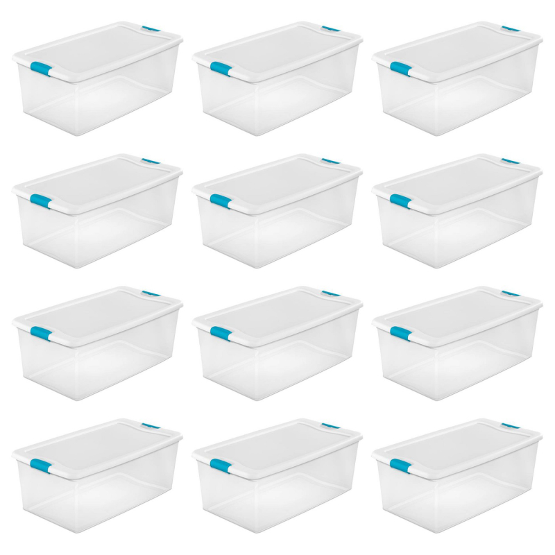 Sterilite 106 Quart Clear Plastic Latching Lid Storage Tote Container, 12 Pack