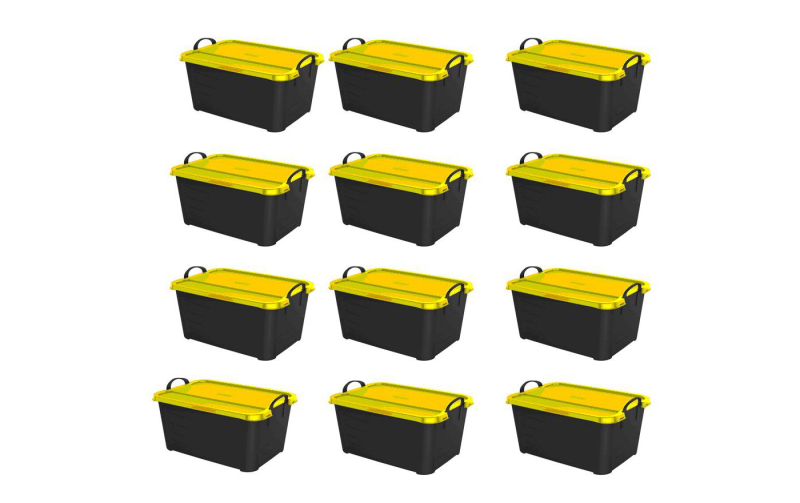 Life Story 55 Quart Plastic Stackable Bin Container, Black & Yellow (12 Pack)