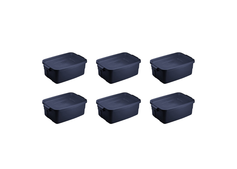 Rubbermaid Roughneck 3 Gallon Rugged Stackable Storage Tote Container, Blue (6 Pack)