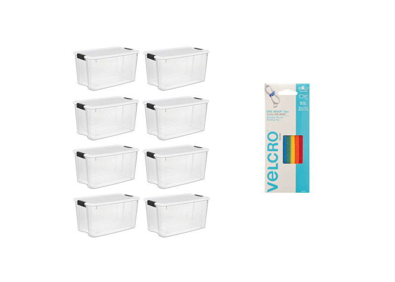 Sterilite 70 Quart Storage (8 Pack) Bundled With Velcro® Brand Wire & Cable Ties