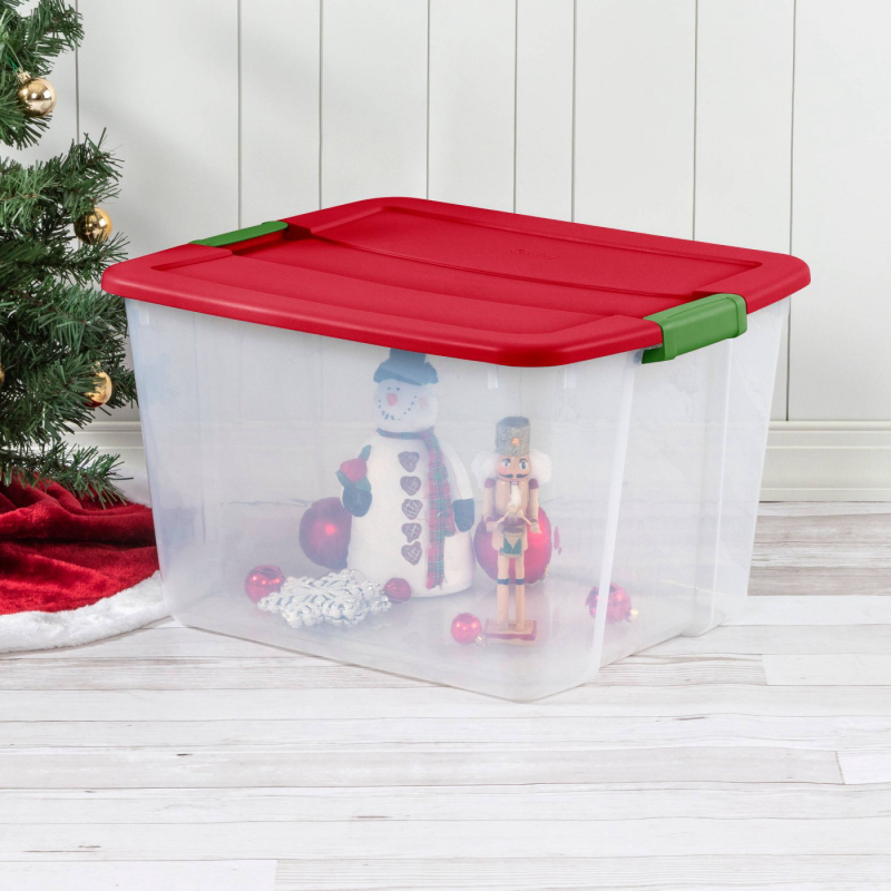 Sterilite 66qt Latching Utility Storage Tub And Totes Red Lid And Green Latch