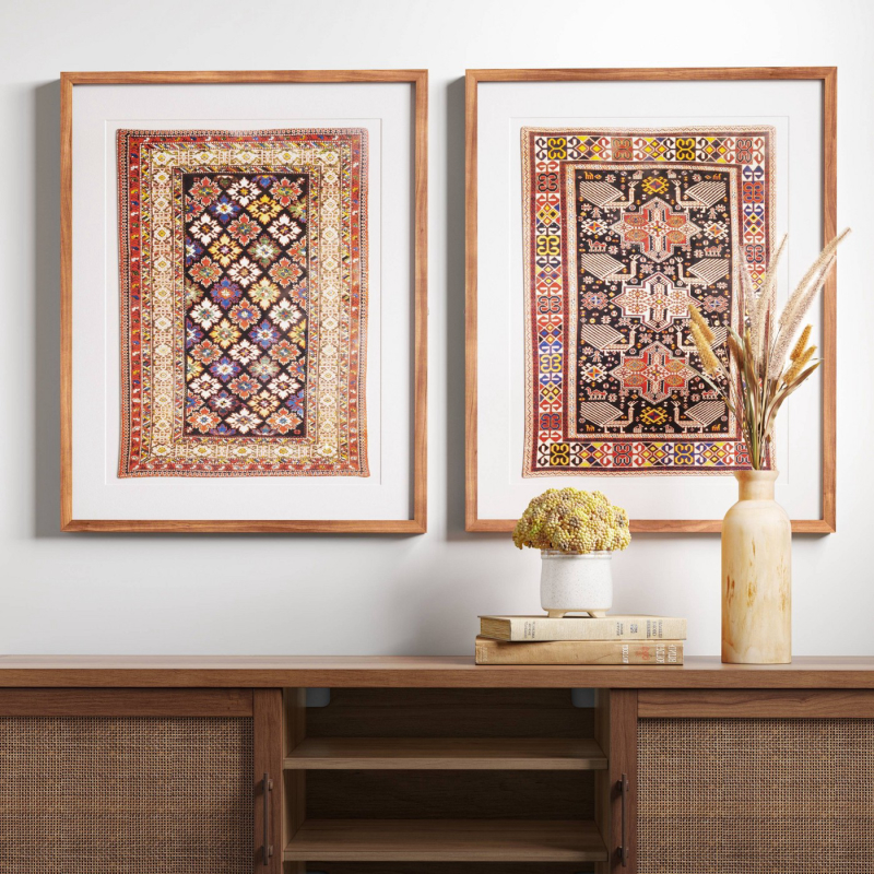(set Of 2) 24" X 30" Caucasian Carpet Azerbaijan Framed Under Glass With Mat - Threshold™