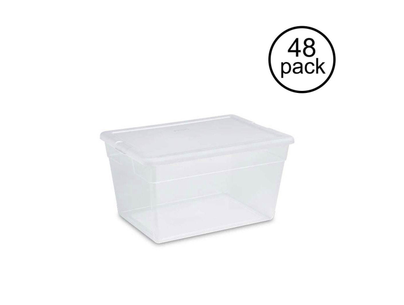 Sterilite 16598008 56 Quart Clear Home Storage Tote Container W/ Lid, 48 Pack