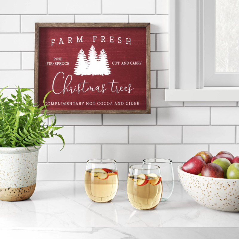 14" X 11" Farm Fresh Christmas Trees Framed Wall Canvas Red - Threshold™