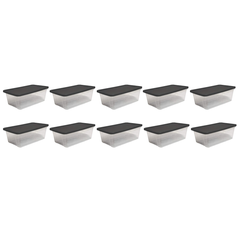 Homz Snaplock Extra Small 6-quart Clear Storage Container W/ Gray Lid, 10-pack