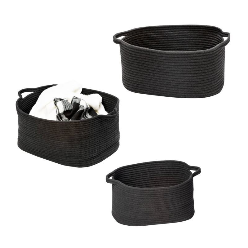 Honey-can-do 3pc Cotton Coil Baskets Black
