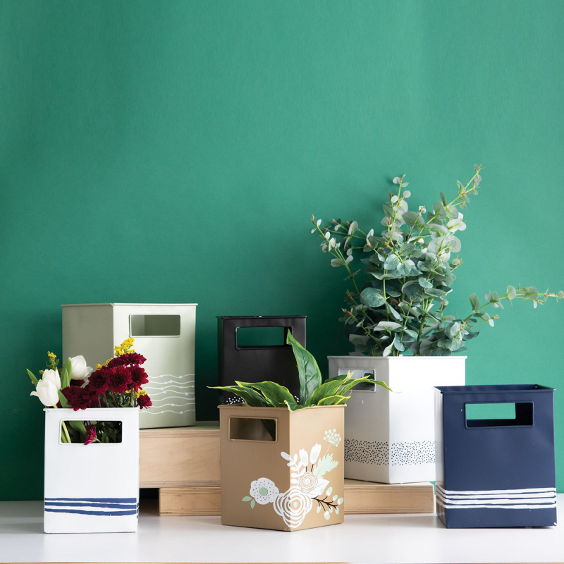 Set Of 2 Navy Patterned Metal Storage Bins - Foreside Home & Garden