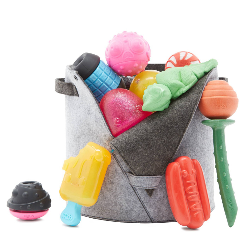 Bark Felt Dog Toy Bin – Gray