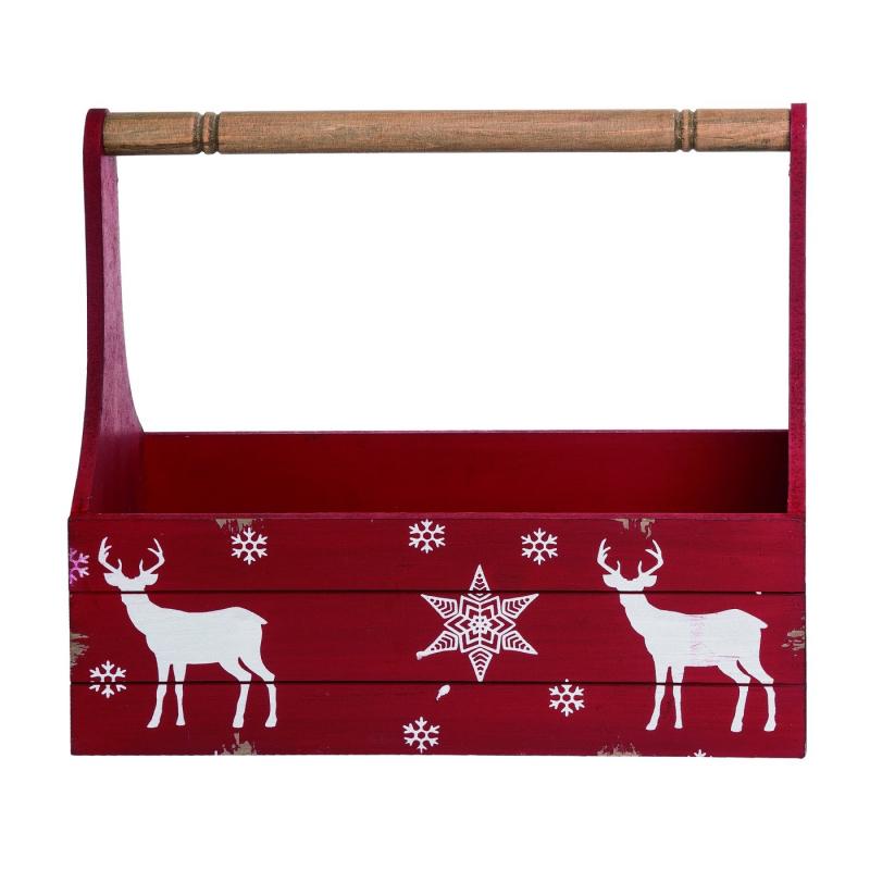 Transpac Wood 15 In. Red Christmas Panel Nordic Reindeer Container
