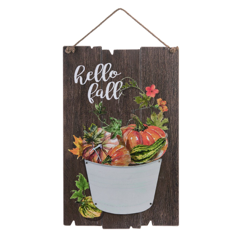 Transpac Wood 19 In. Brown Fall/harvest Dimensional Bucket Wall Decor