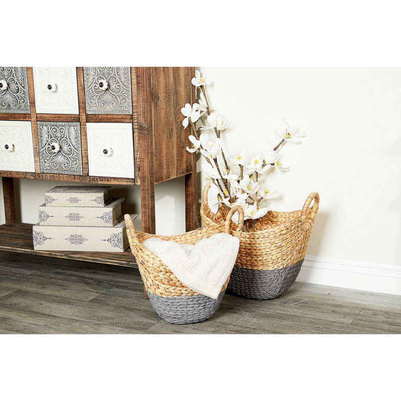 Olivia & May Set Of 4 Large Oval Dip Dyed Water Hyacinth Wicker Storage Baskets With Round Handles Gray/natural