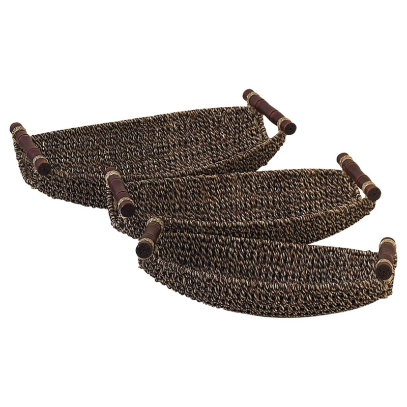 Olivia & May 15"x17"x19" Set Of 3 Rustic Woven Seagrass And Metal Baskets