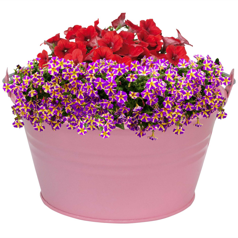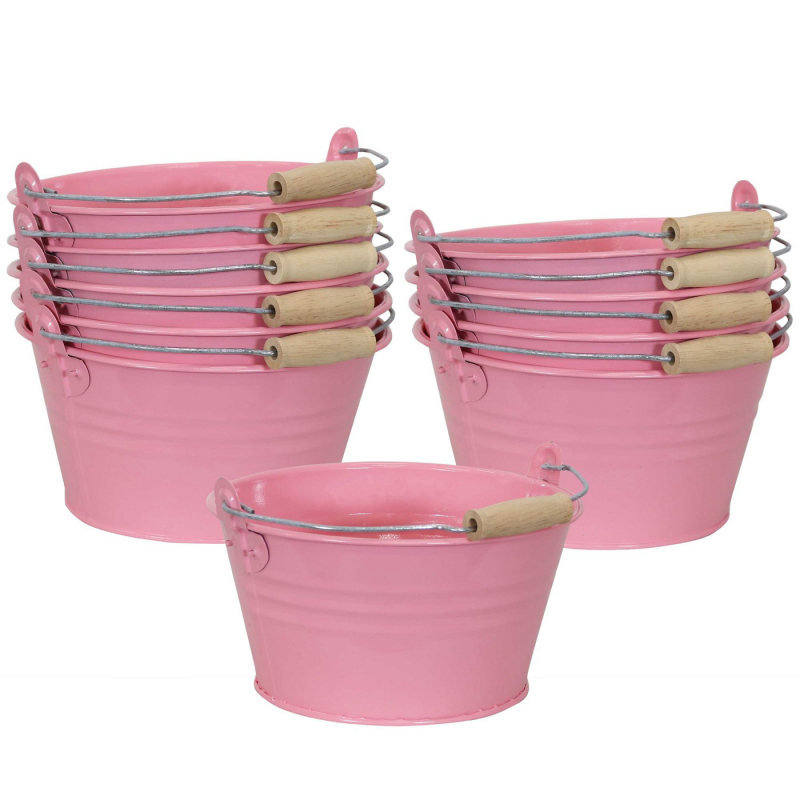 10pc 7.75" Galvanized Steel Buckets With Handles - Pink - Sunnydaze Decor