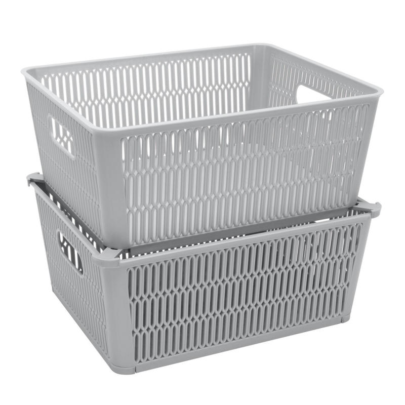 Simplify 2 Stack Slide Storage Tote Baskets Gray