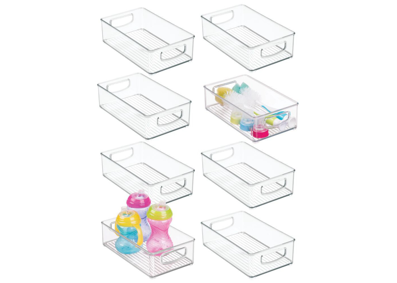 Mdesign Plastic Kitchen Baby Food Storage Bin With Handle, 8 Pack - Clear