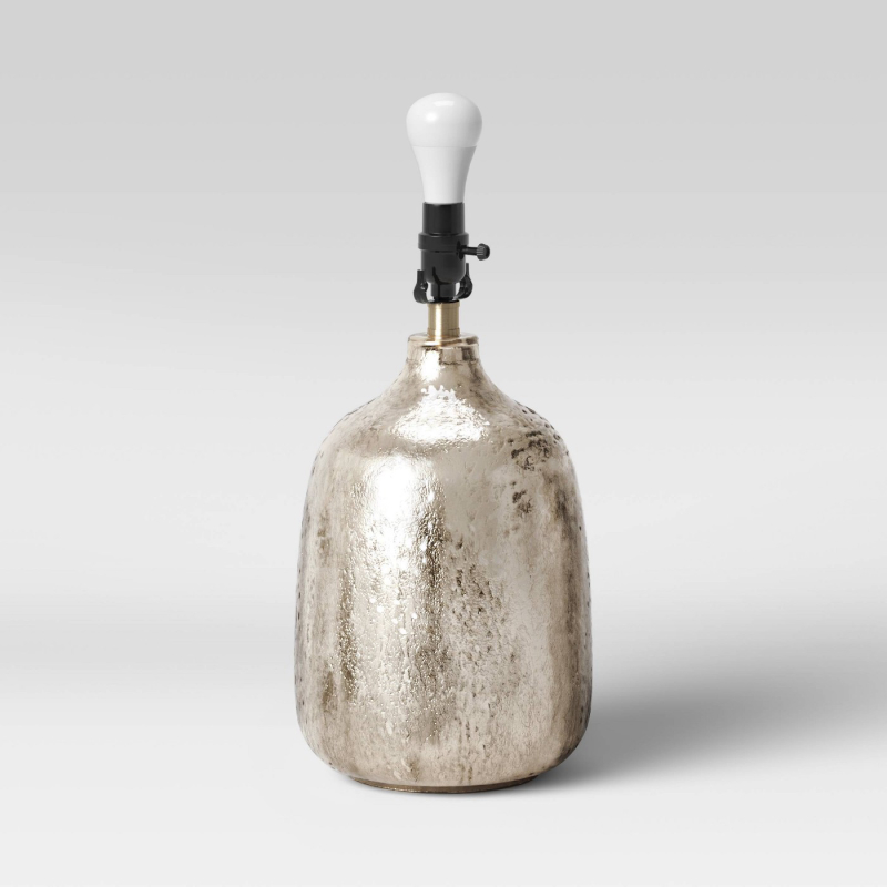 14.25" Antique Metal Table Lamp With Detailed Glass Shade White - Ore International