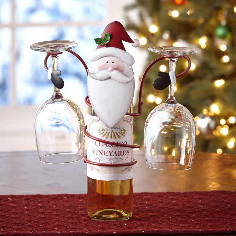 Lakeside Metal Holiday Santa Wine Bottle And Glass Holder Stand Decoration