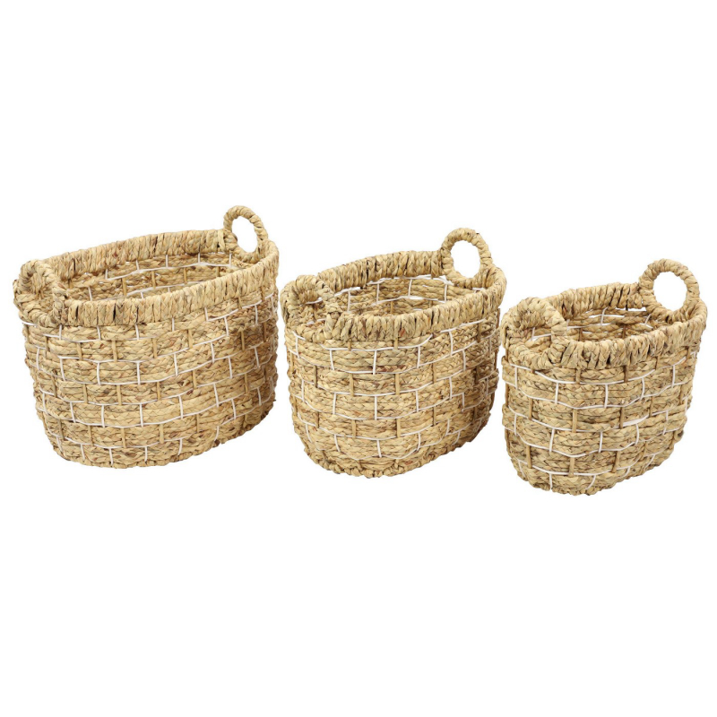 Set Of 3 Oval Handmade Water Hyacinth Wicker Storage Baskets - Olivia & May