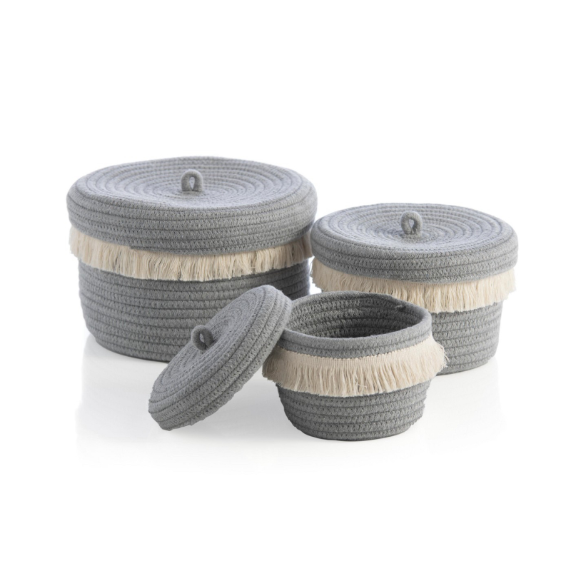 Assorted Set Of 3 Round Dharma Organizer Baksets - Gray - Shiraleah