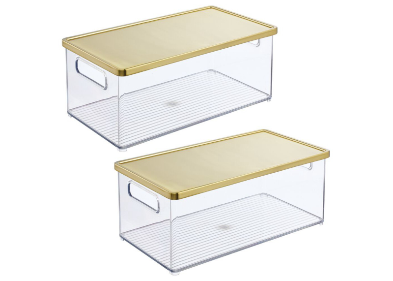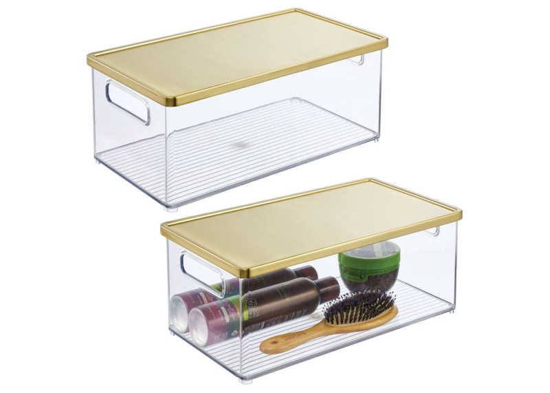 Mdesign Storage Bin With Handles, Lid For Bathroom, Vanity - 2 Pack