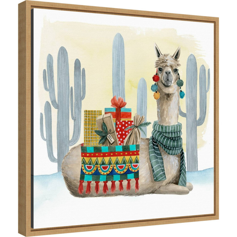 16" X 16" Boho Christmas Ii Llama Cactus By Grace Popp Framed Canvas Wall Art - Amanti Art