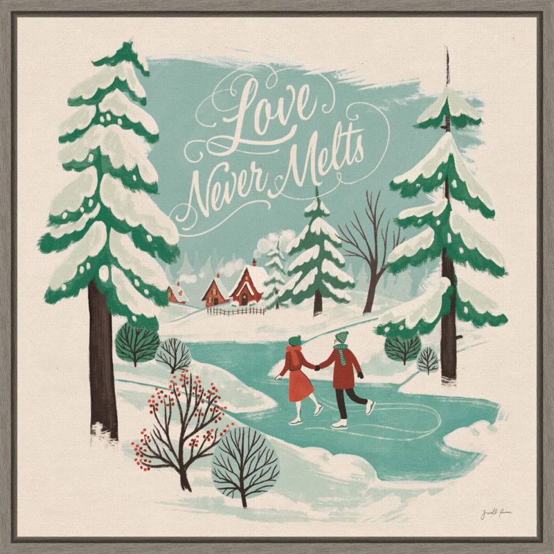 16" X 16" Winter Bliss V Ice Skating By Janelle Penner Framed Canvas Wall Art - Amanti Art