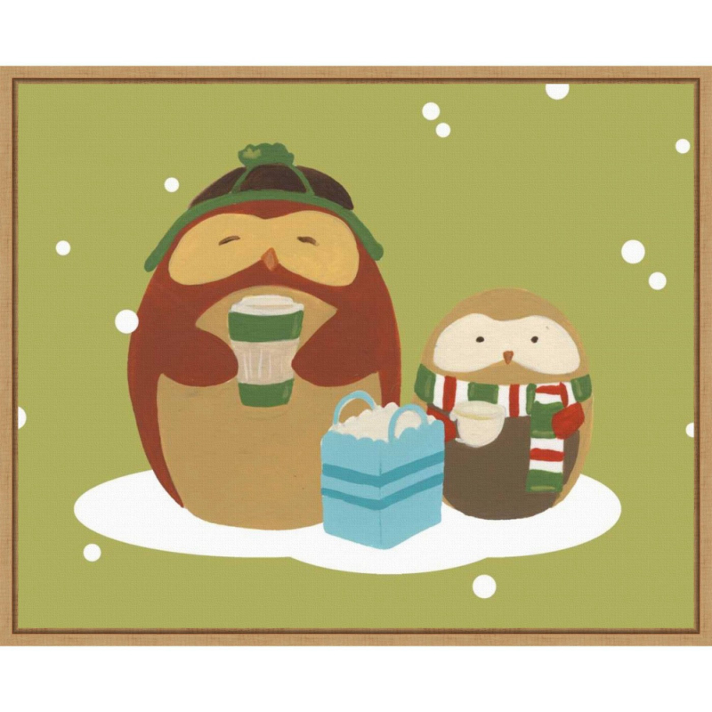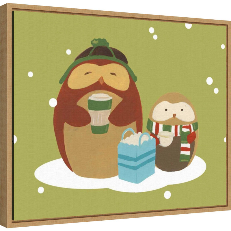 20" X 16" Happy Owlidays Viii Owl In Snow By June Erica Vess Framed Canvas Wall Art - Amanti Art