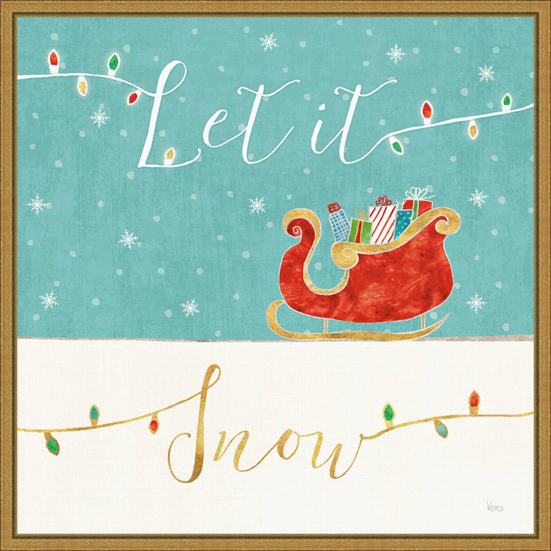 16" X 16" Let It Snow Christmas Sleigh By Veronique Charron Framed Canvas Wall Art - Amanti Art