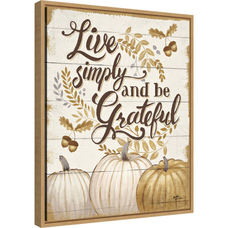 16" X 20" Grateful Season I Pumpkin By Janelle Penner Framed Canvas Wall Art - Amanti Art