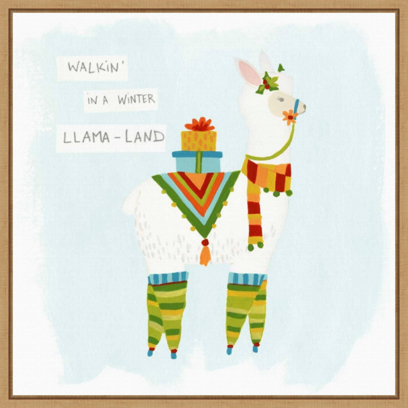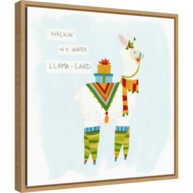 16" X 16" Fa La La La Llama Ii By June Erica Vess Framed Canvas Wall Art - Amanti Art
