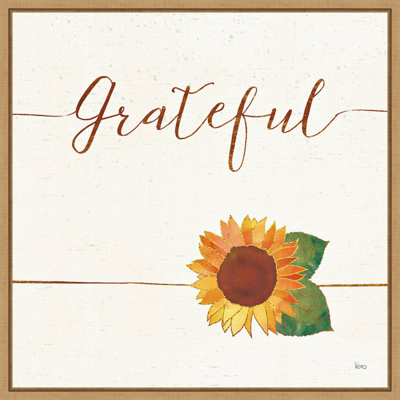 16" X 16" Grateful Fall Sunflower By Veronique Charron Framed Canvas Wall Art - Amanti Art