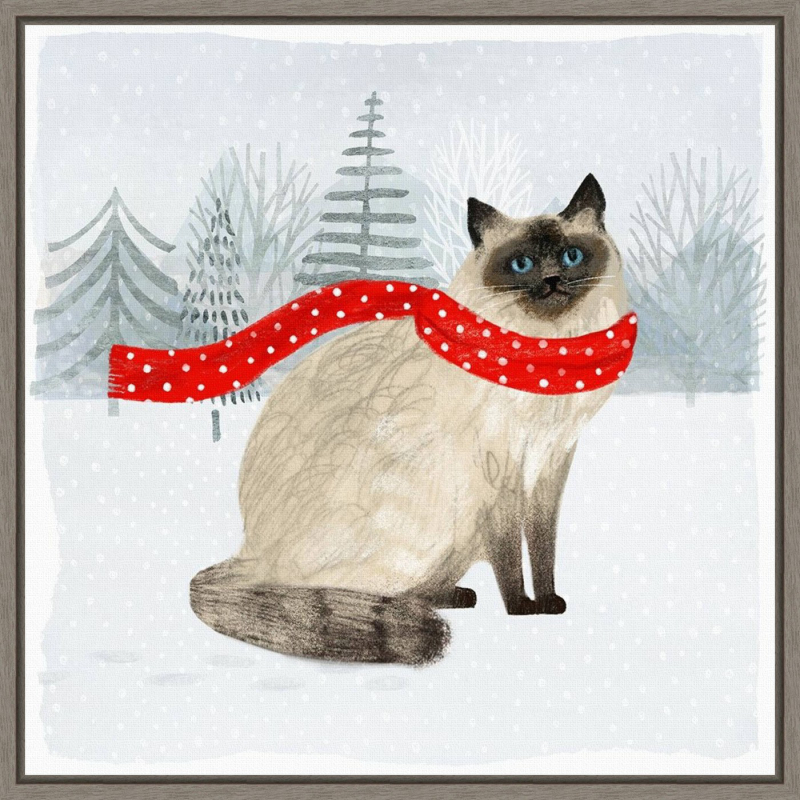 16" X 16" Christmas Cats And Dogs Iii By Victoria Borges Framed Canvas Wall Art - Amanti Art