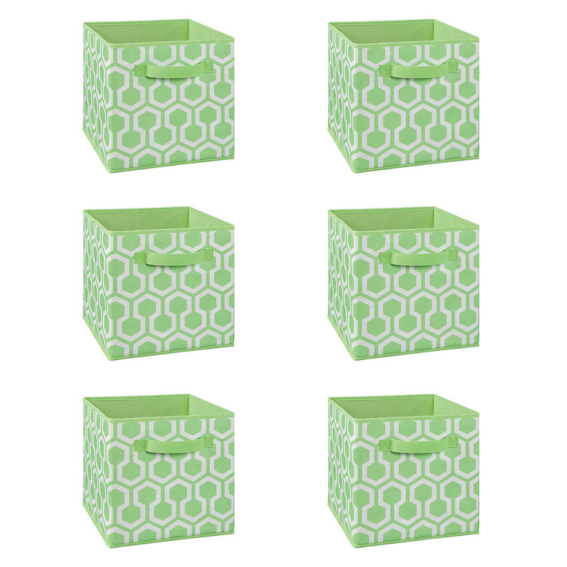 Closetmaid 184300 Nonwoven Polypropylene Fabric Multiple Item Spacious Storage Organizer Cube With Two Handle Design, Green Hexagon (6 Pack)