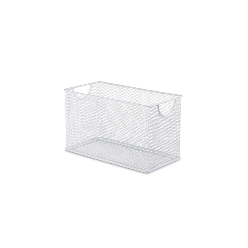 Design Ideas Mesh Stacking Bin – Metal Shelving Storage Container Organizer – White, 5.7" X 11" X 6.3"